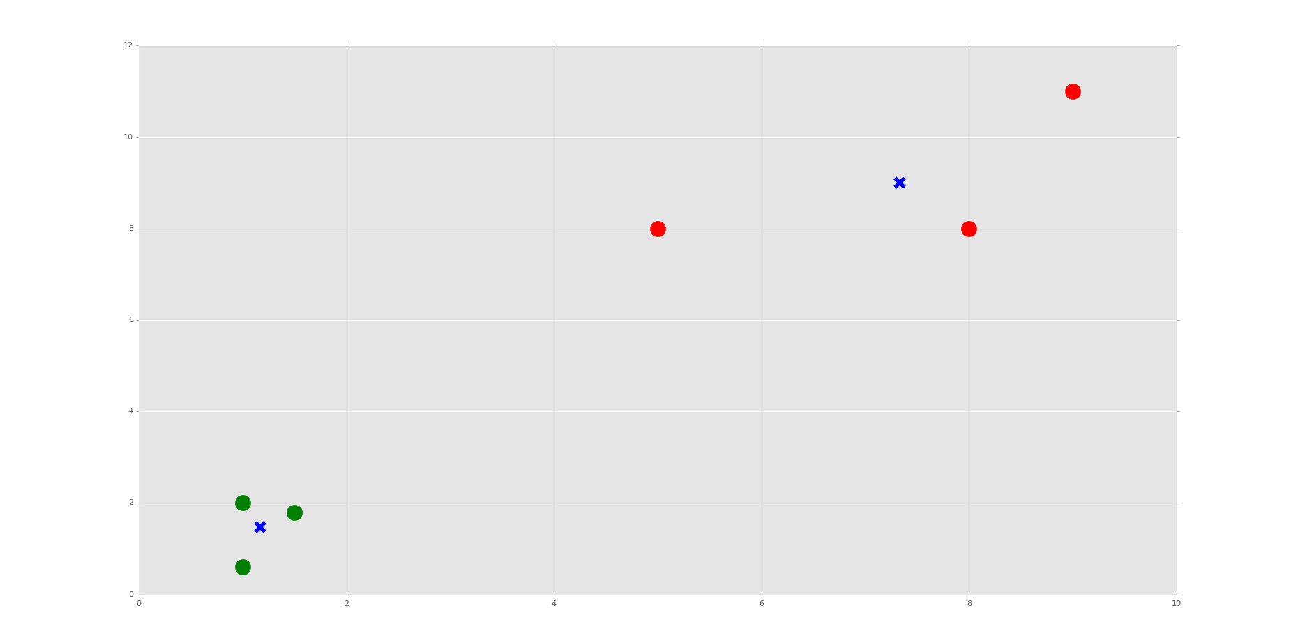 As we can see, the machine was very successful! Now, I encourage you to play with the n_clusters variable. First, decide how many clusters you will do, then try to predict where the centroids will be.